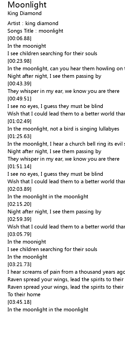 | [00:25.91] | In the moonlight, can you hear them howling on the wind |