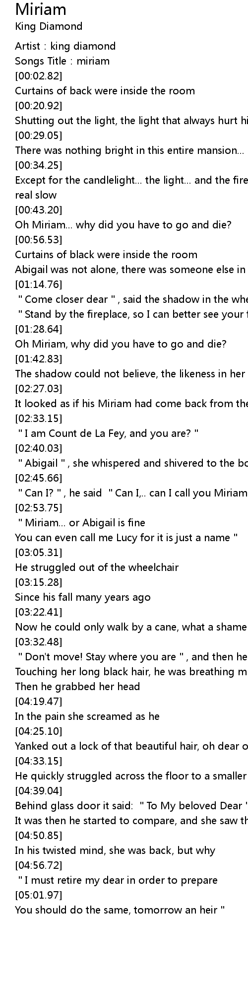 | [00:51.89] | Oh Miriam... why did you have to go and die? |