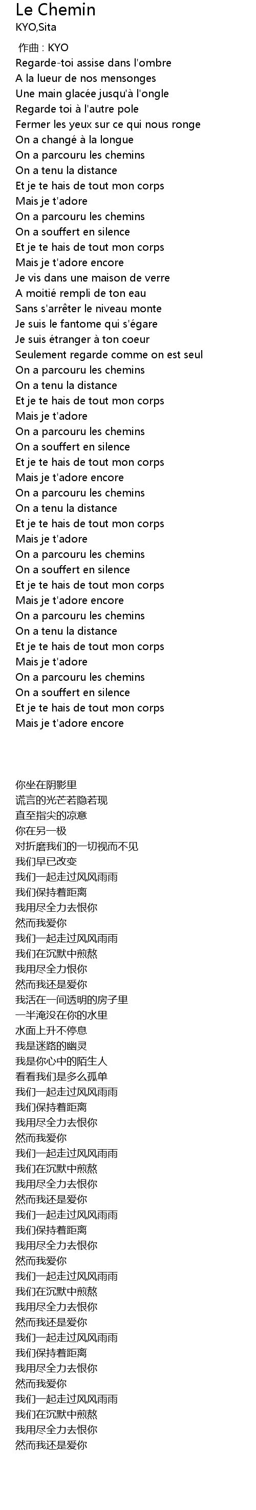 | [02:32.91] | Et je te hais de tout mon corps |