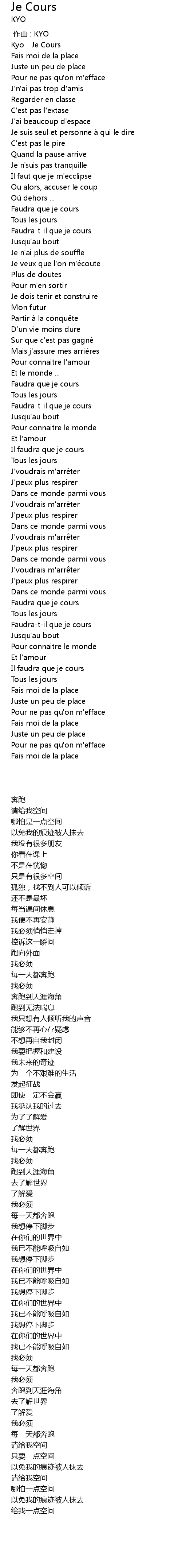 | [00:00.00] | Kyo Je Cours |