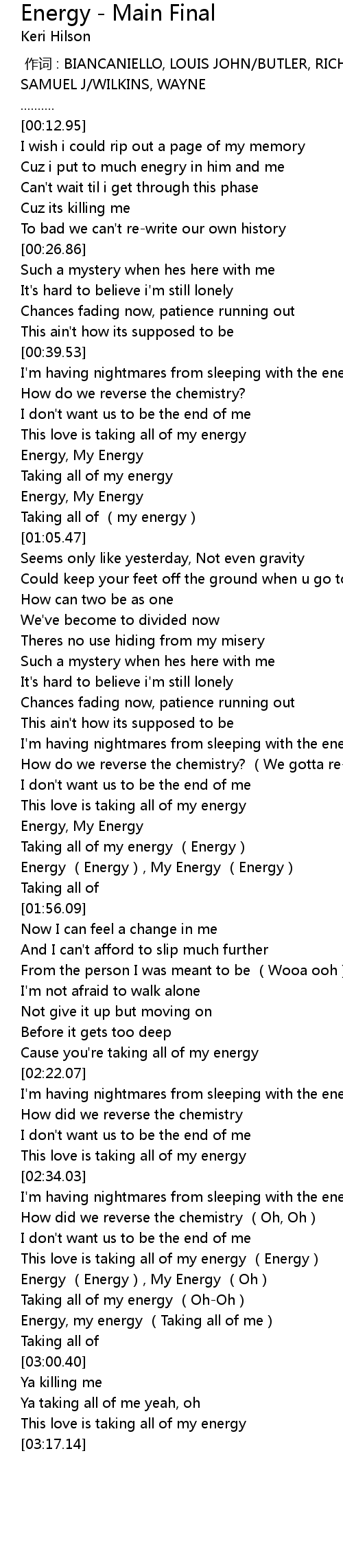 | [02:55.08] | Energy, my energy (Taking all of me) |