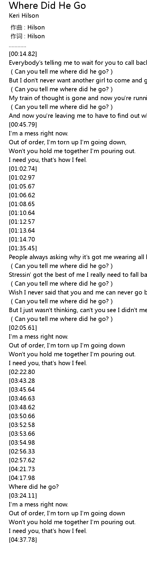 | [04:25.10][04:17.98][03:01.81] | Where did he go? |