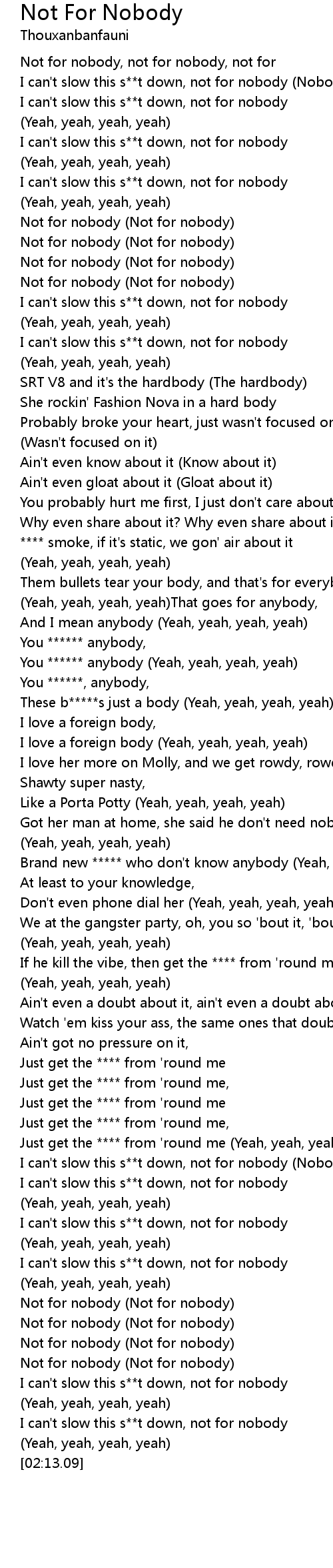 [01:59.94] Not for nobody (Not for nobody)