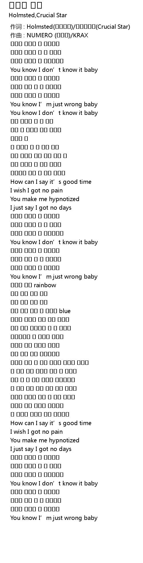 | [00:00.000] | 作词 : Holmsted(홈스테드)/크루셜스타(Crucial Star) |
