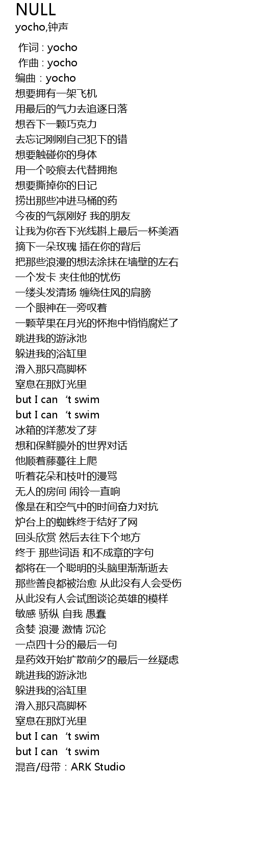| [01:30.092] | but I can' t swim |