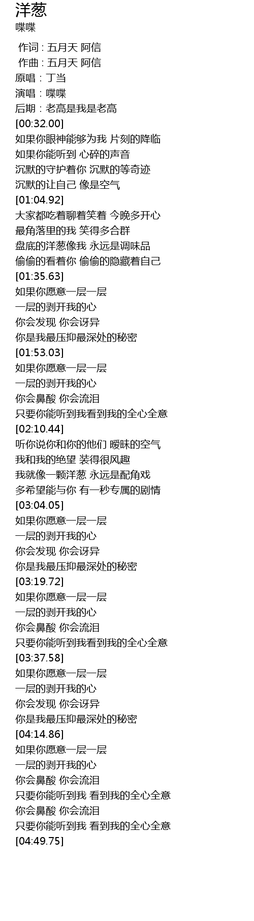 | [02:50.89] | 我就像一颗洋葱 永远是配角戏 |