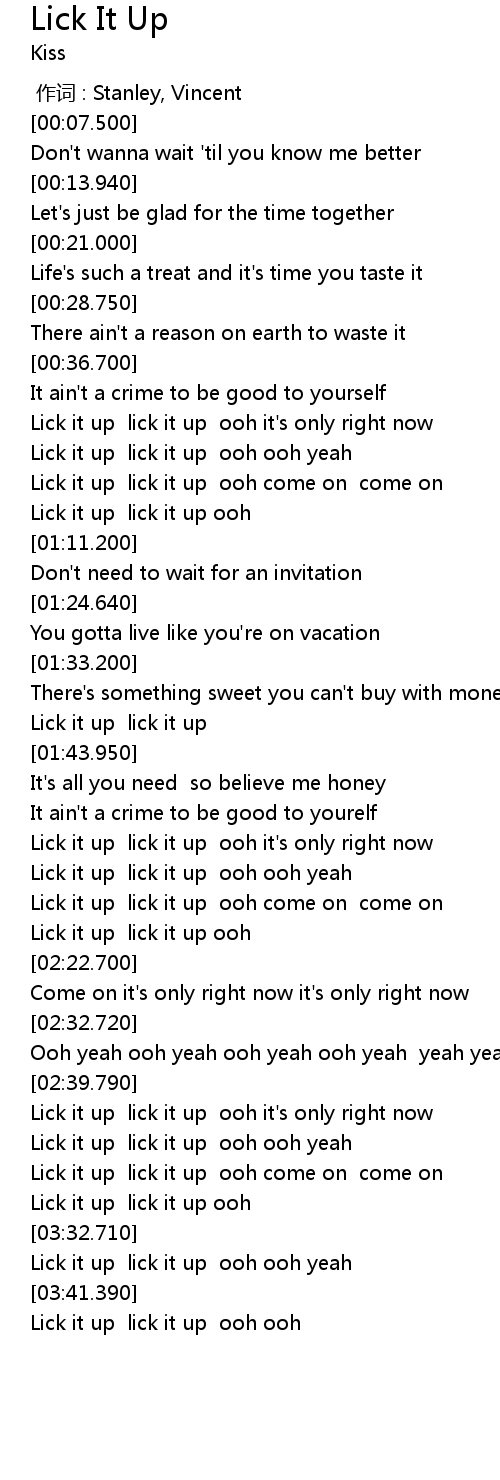 | [00:48.780] | Lick it up lick it up ooh ooh yeah |