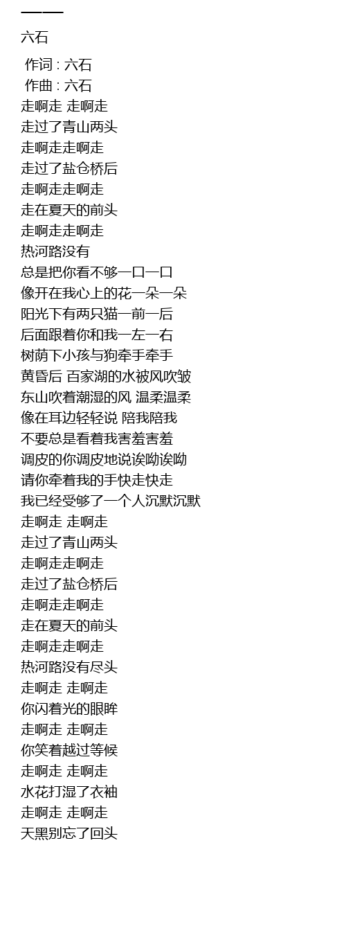 | [00:00.000] | 作词 : 六石 |
