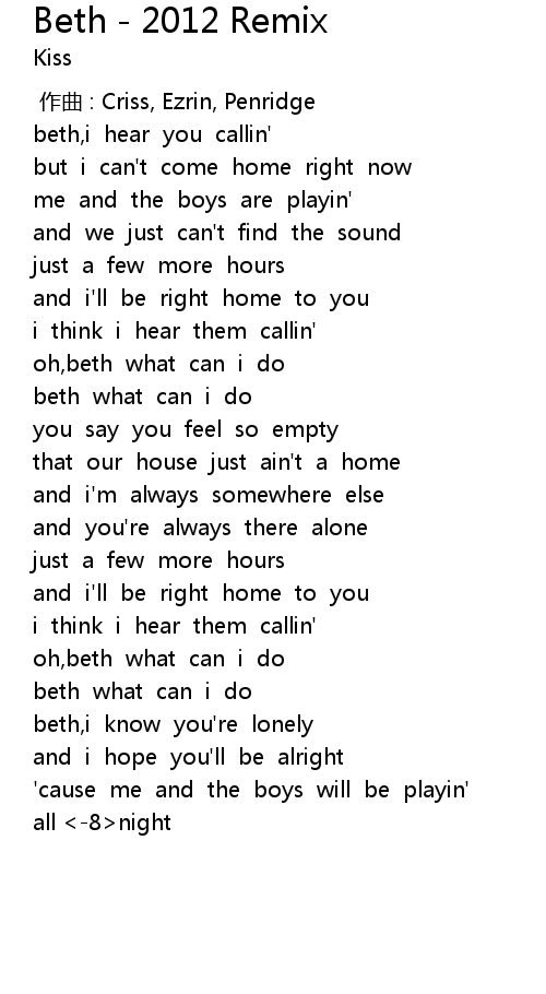 | 歌曲 | Beth - 2012 Remix |