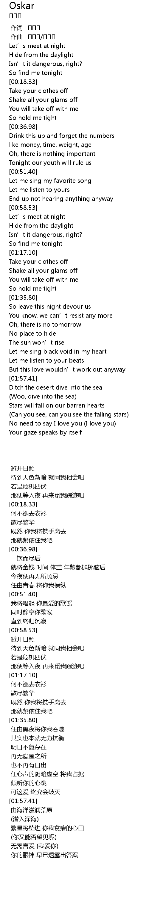 | 歌曲 | Oskar |