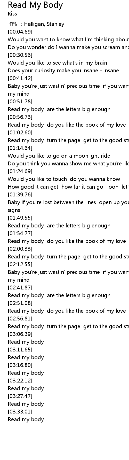 | [02:01.21] | Read my body turn the page get to the good stuff read my body |