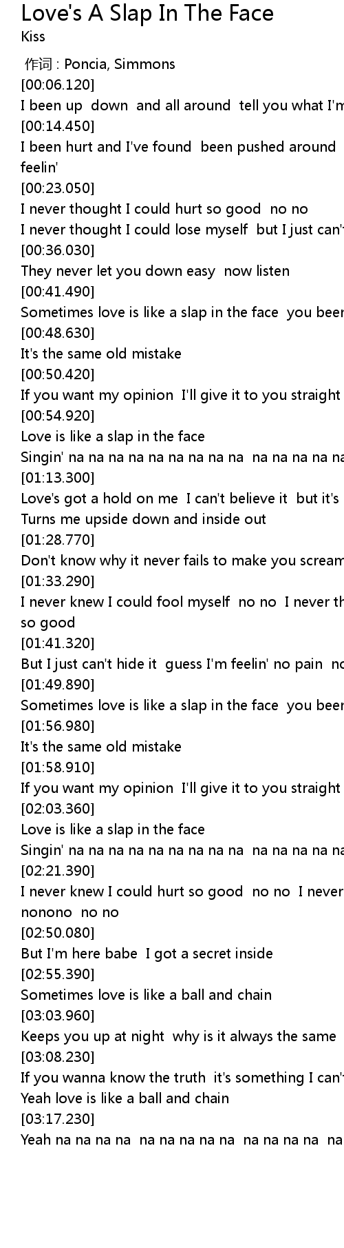 | 歌曲 | Love's A Slap In The Face |