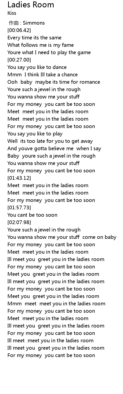 | [02:41.00] | Ill meet you greet you in the ladies room |