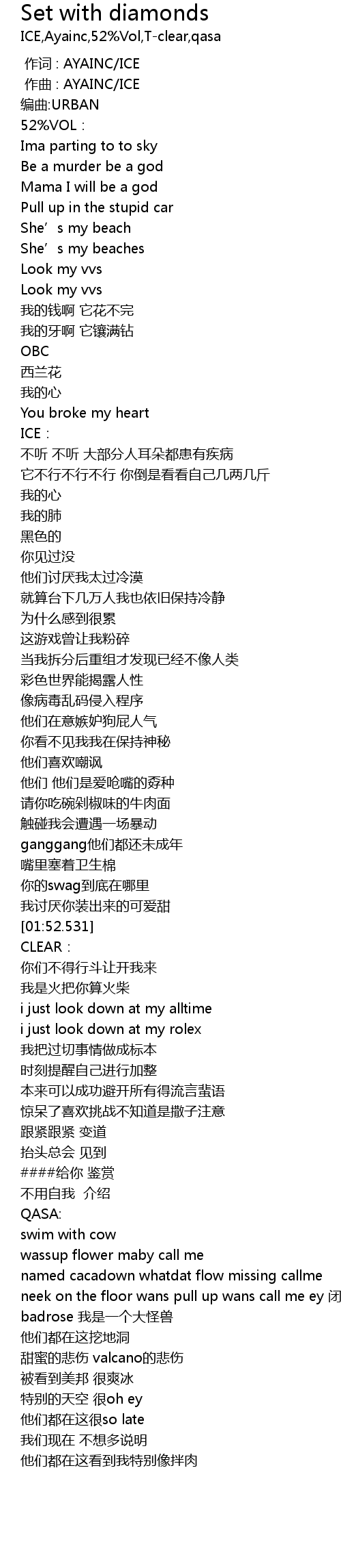 | [00:52.289] | 我的牙啊 它镶满钻 |