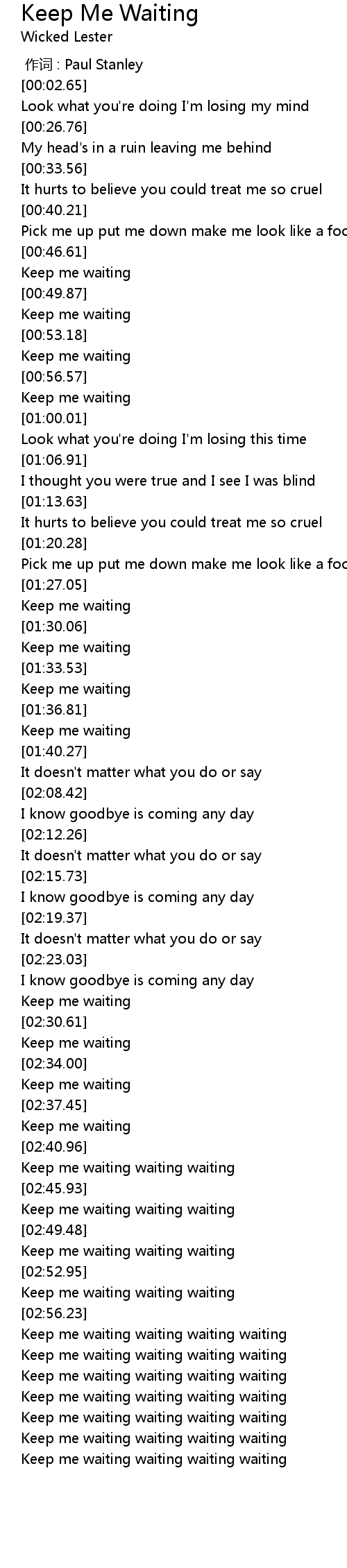 | [03:00.49] | Keep me waiting waiting waiting waiting |