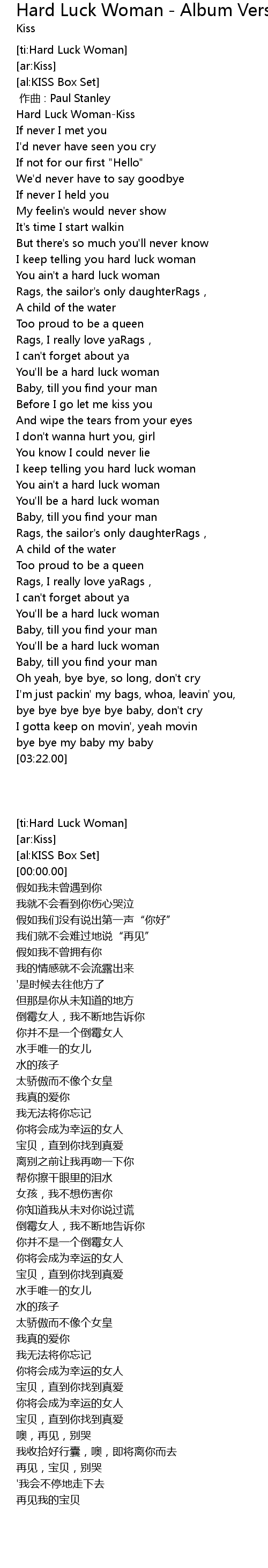 | [00:00.00] | Hard Luck Woman-Kiss |