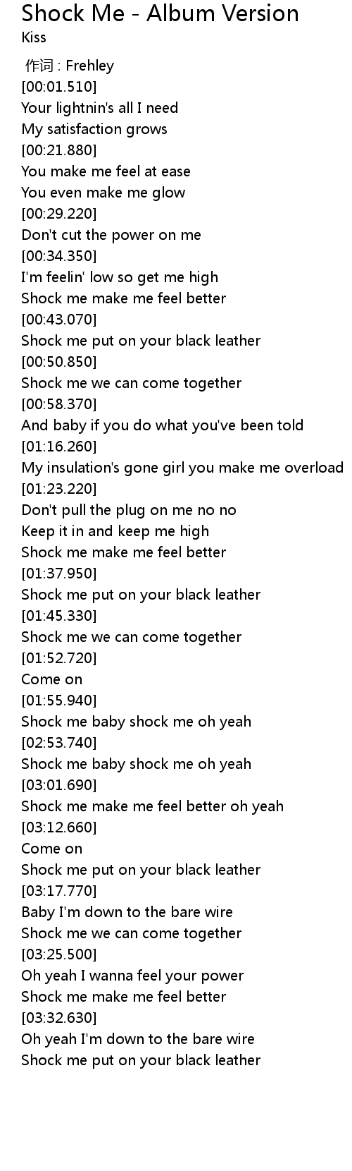 | [02:55.520] | Shock me baby shock me oh yeah |