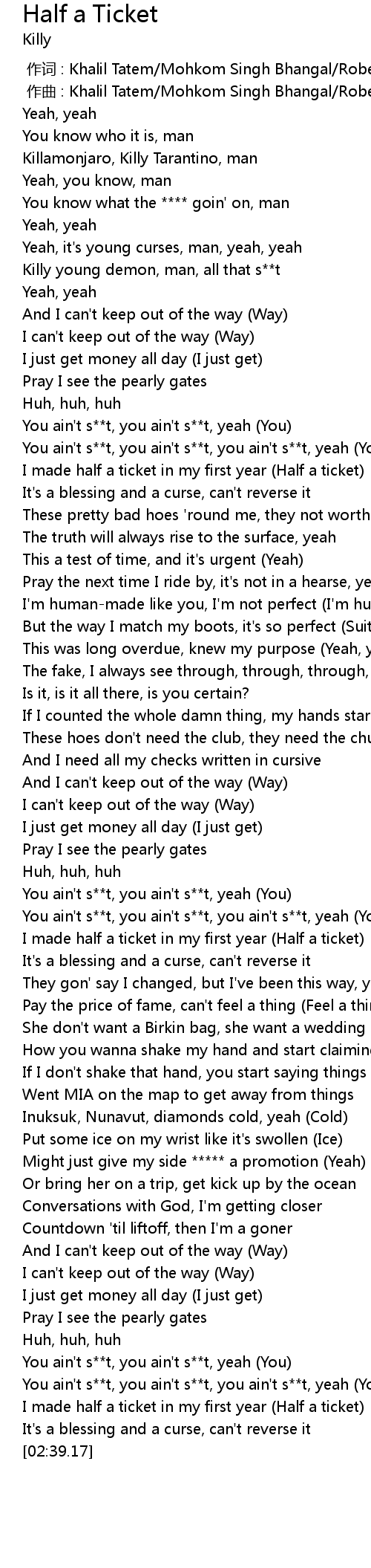 | [02:32.77] | I made half a ticket in my first year (Half a ticket) |