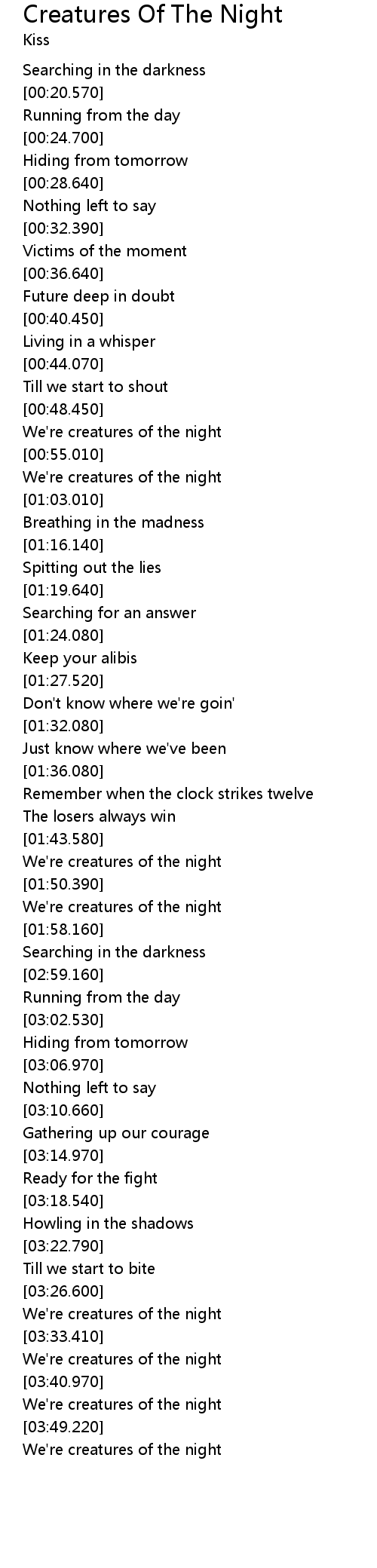 We're creatures of the night |
