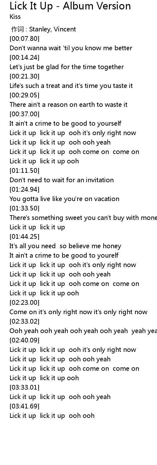 | [02:01.13] | Lick it up lick it up ooh ooh yeah |