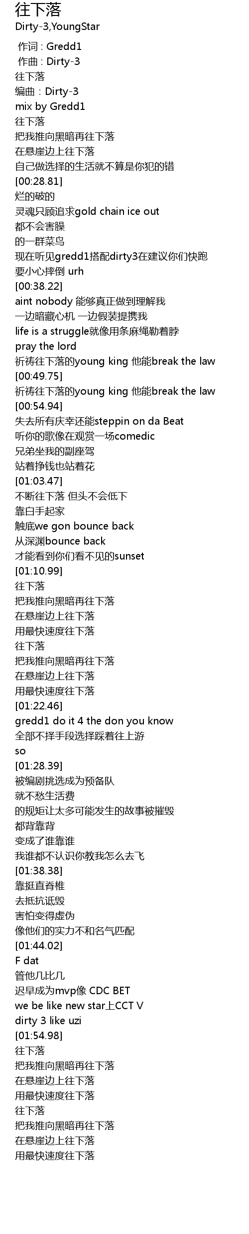 | [02:00.75] | yòng zuì kuài sù dù wǎng xià luò |