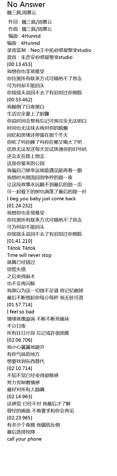 | [00:05.458] | biān qǔ: 4Hunnid |