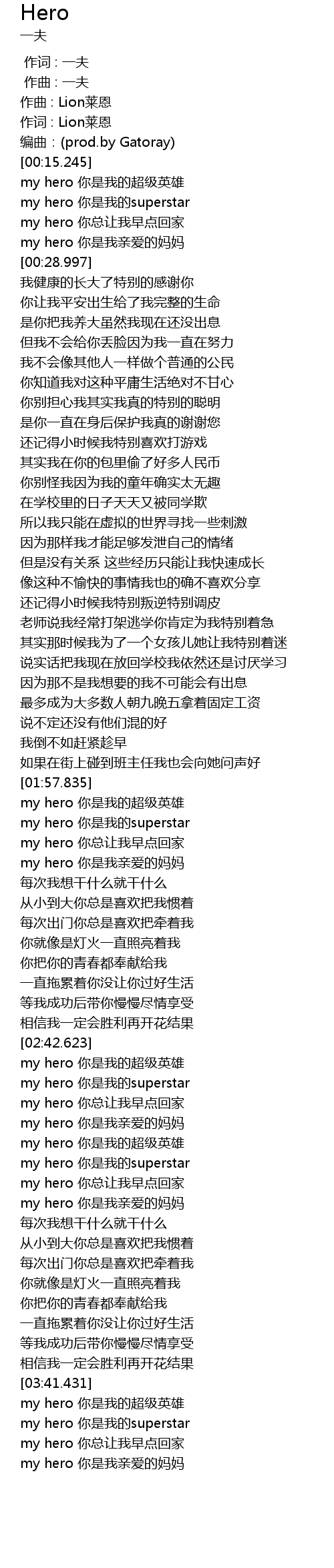 | [02:53.384] | my hero 你是我亲爱的妈妈 |