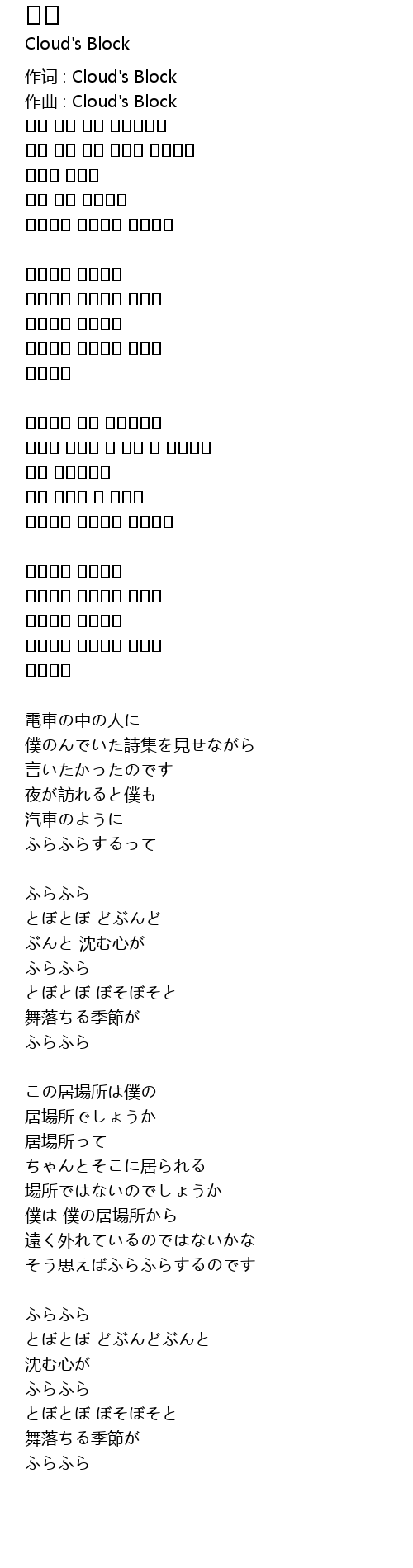 | 作词 : Cloud's Block | |