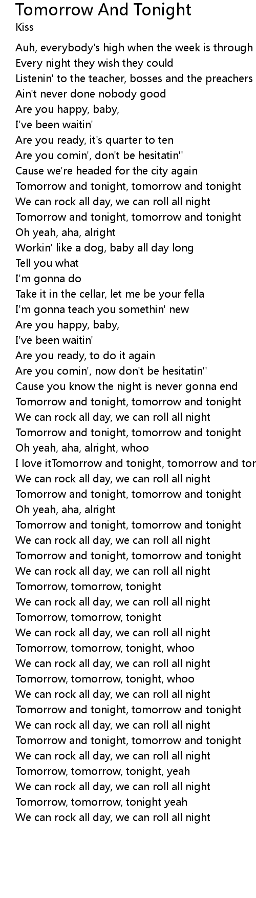 | I love itTomorrow and tonight, tomorrow and tonight | |
