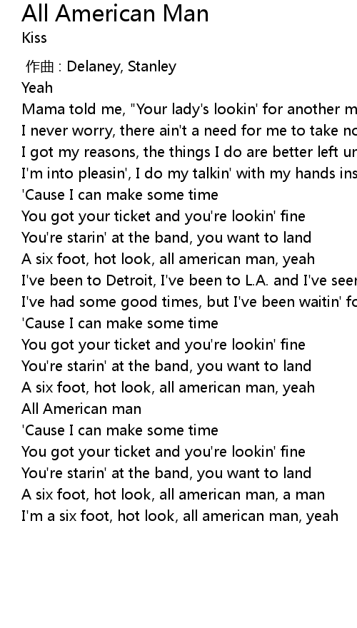 | [02:48.50] | I'm a six foot, hot look, all american man, yeah |