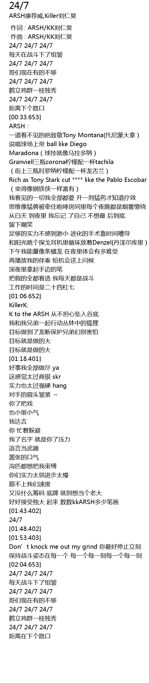 | [00:00.000] | 作词 : ARSH/KK刘仁昊 |