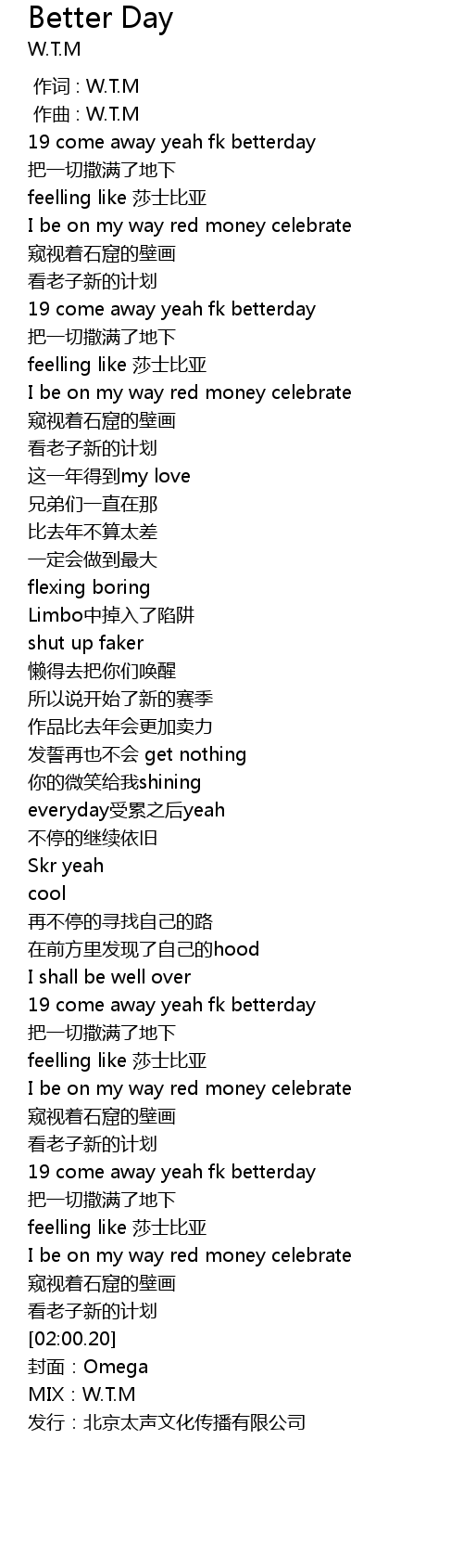 | [00:00.000] | 作词 : W.T.M |