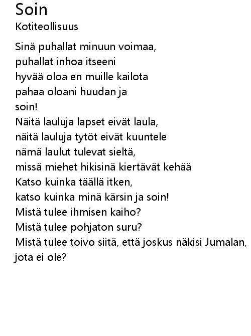 | Mist tulee toivo siit, ett joskus n kisi Jumalan, | |