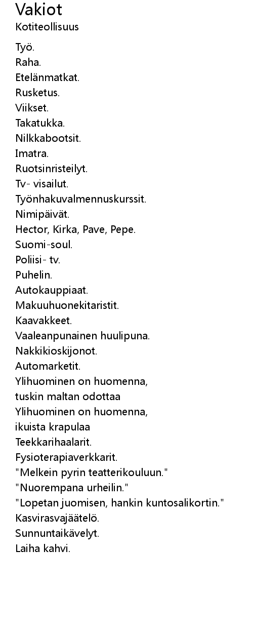 | "Lopetan juomisen, hankin kuntosalikortin." | |