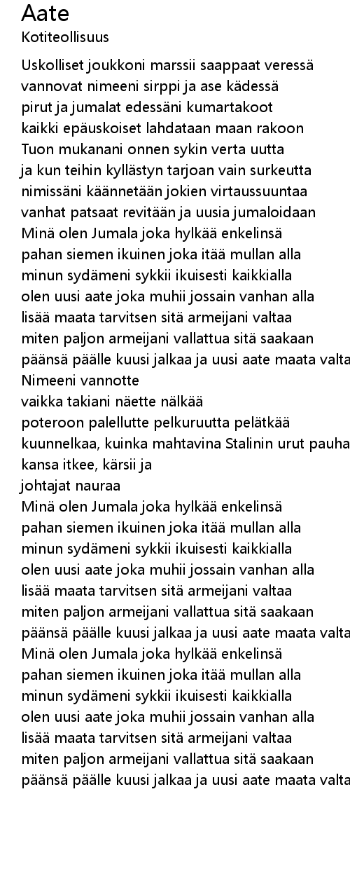 | kuunnelkaa, kuinka mahtavina Stalinin urut pauhaa | |