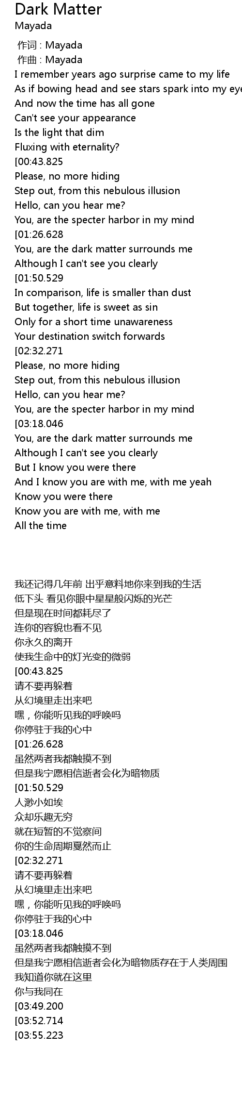 | [01:35.481] | 但是我宁愿相信逝者会化为暗物质 |