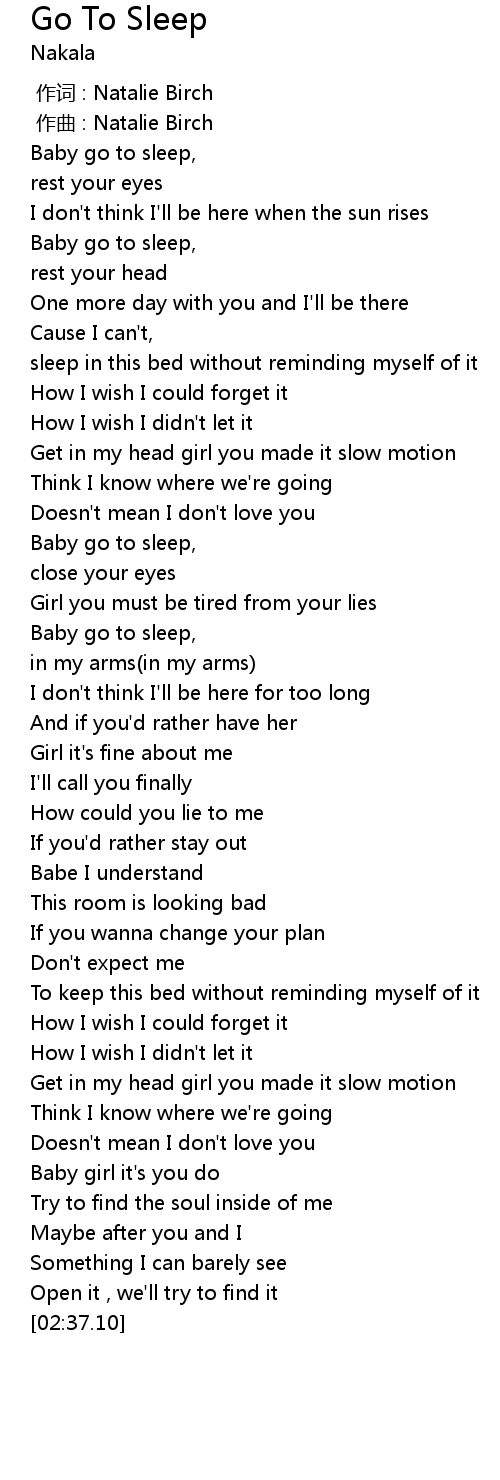 | [00:53.46] | Baby go to sleep, |