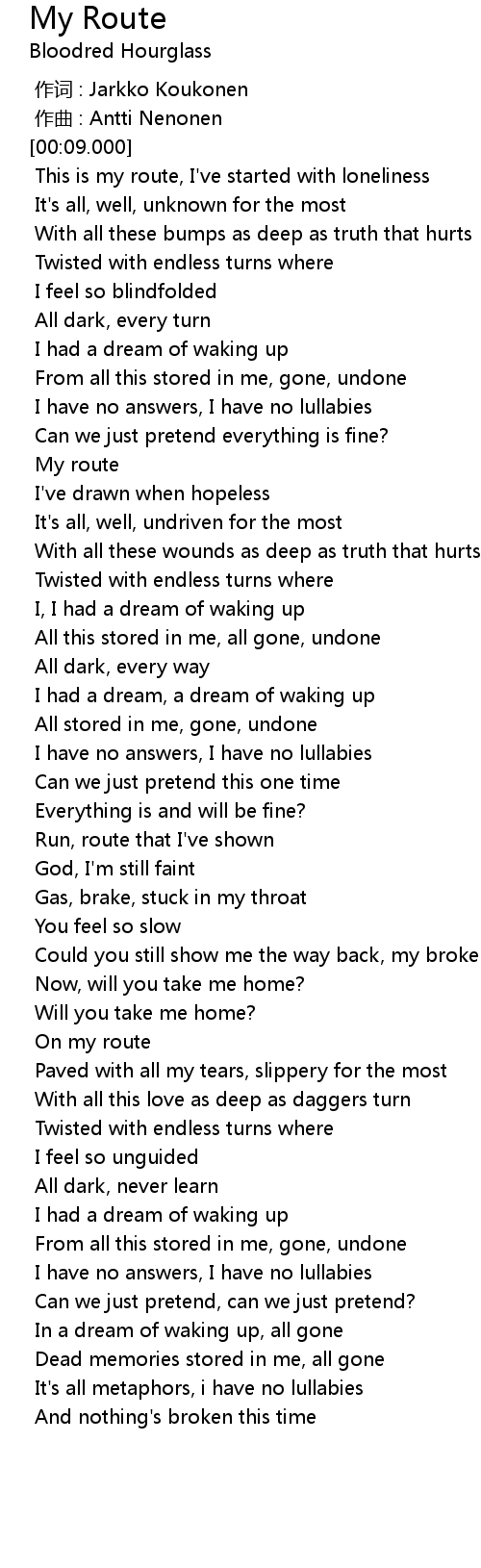 | [00:00.000] | zuo ci : Jarkko Koukonen |