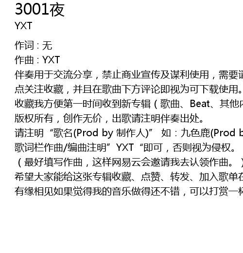 | 歌词栏作曲/编曲注明”YXT“即可,否则视为侵权。 | |