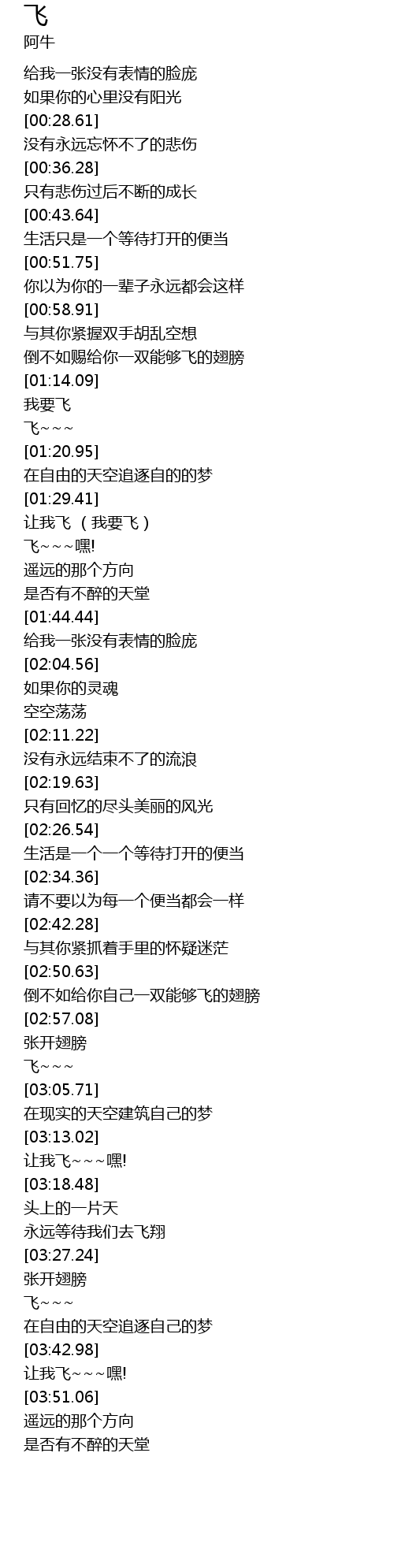 | [02:59.99] | 飞~~~ |