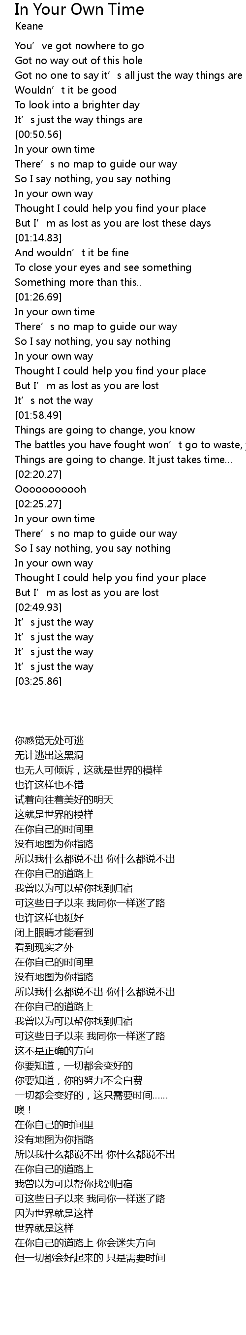 | [00:51.06] | 在你自己的时间里 |