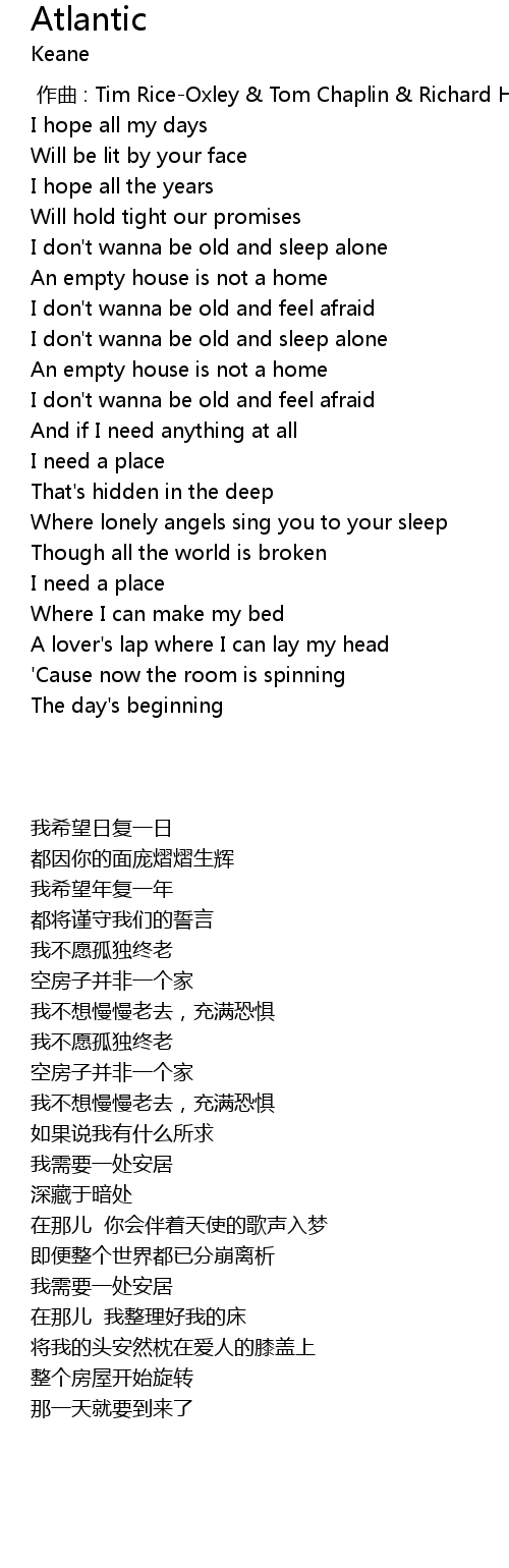 | [00:00.00] | 作曲 : Tim Rice-Oxley & Tom Chaplin & Richard Hughes |
