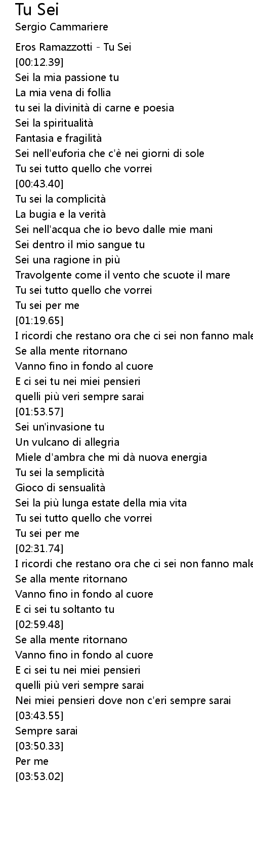 | [00:00.00] | Eros Ramazzotti - Tu Sei |
