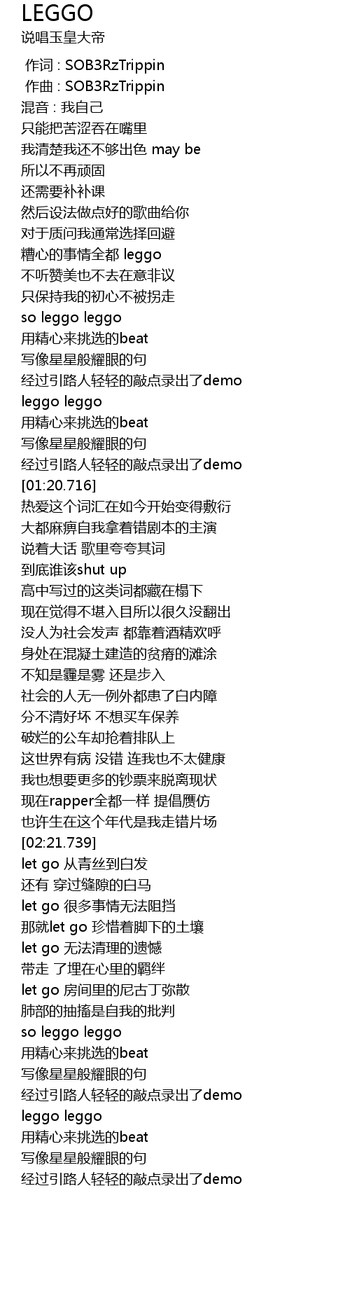 | [01:56.802] | xian zai rapper quan dou yi yang ti chang yan fang |