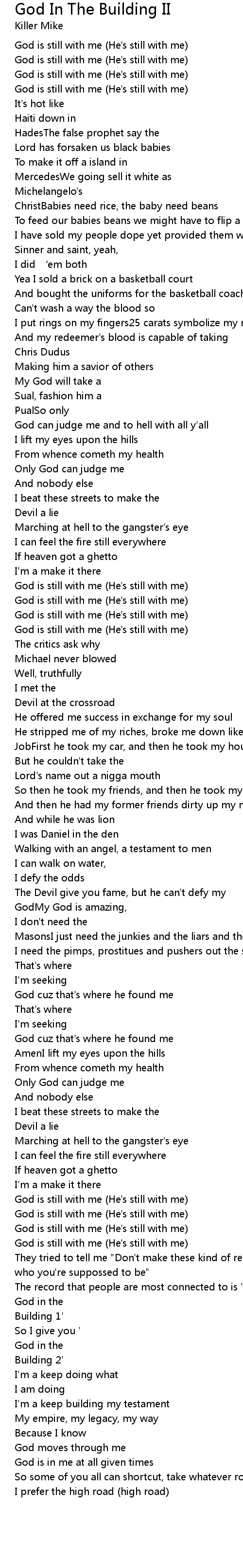 | 歌曲 | God In The Building II |