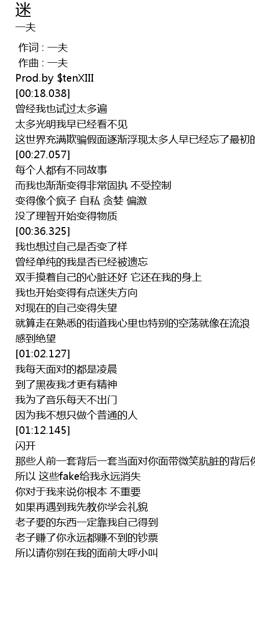 | [00:00.000] | 作词 : 一夫 |