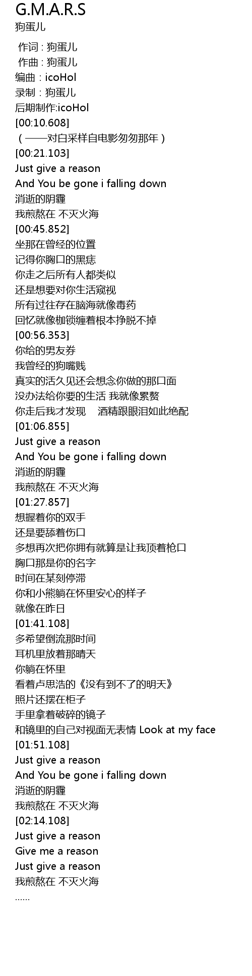 | [00:01.000] | 作曲 : 狗蛋儿 |