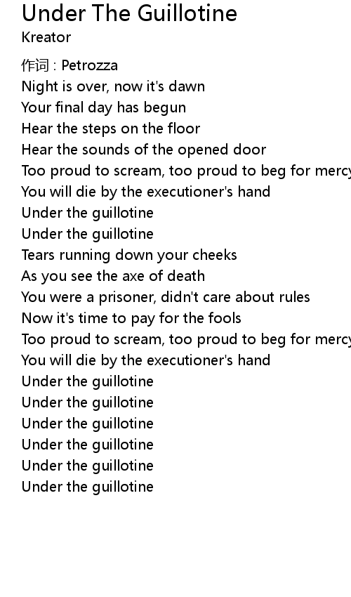 | 歌曲 | Under The Guillotine |
