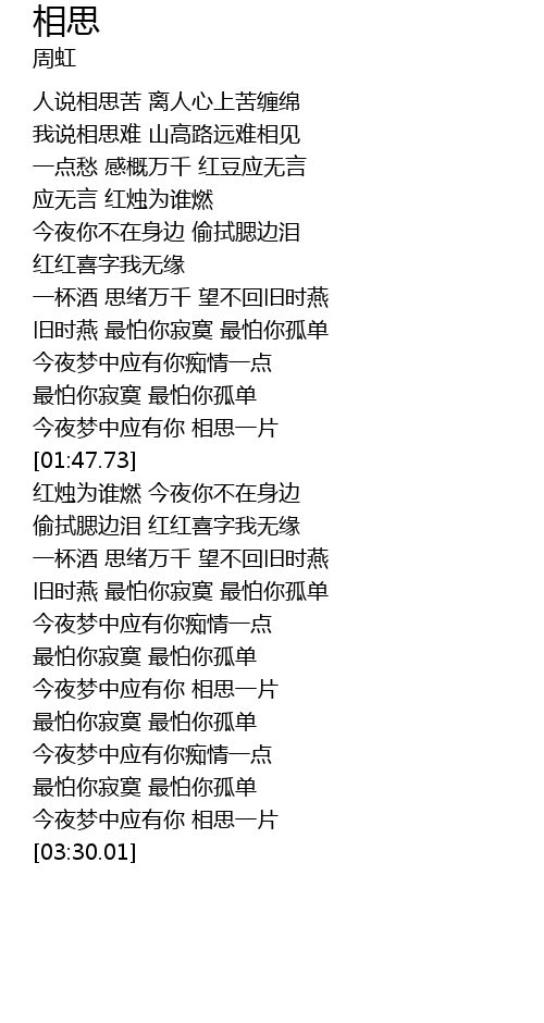 | [00:44.99] | 一点愁 感概万千 红豆应无言 |