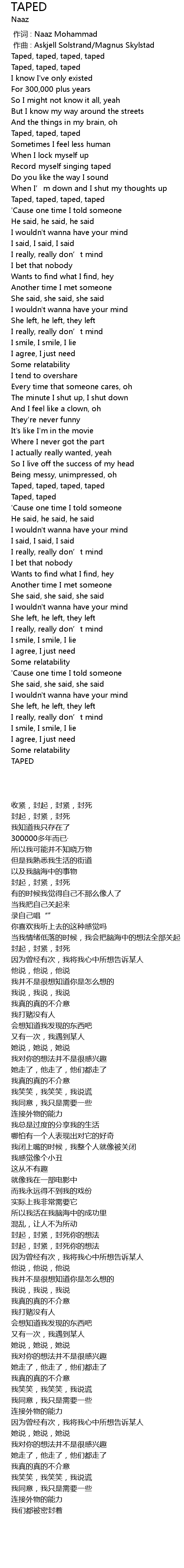 | [00:42.51] | Taped, taped, taped, taped |